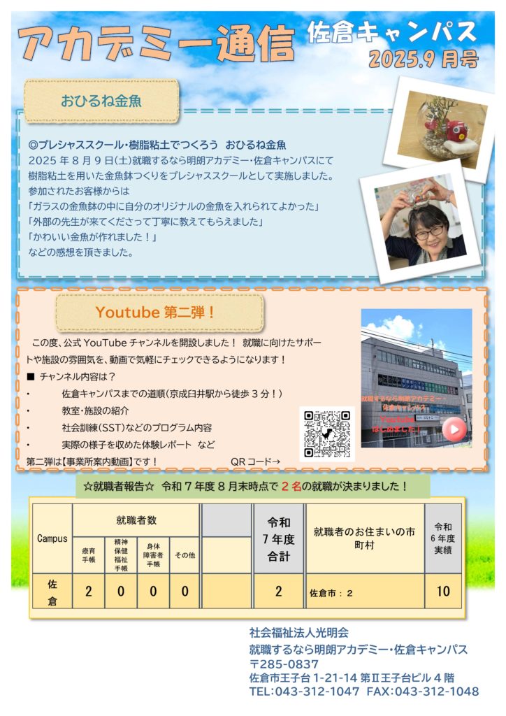 佐倉キャンパス通信(令和7年9月号)を掲載します!