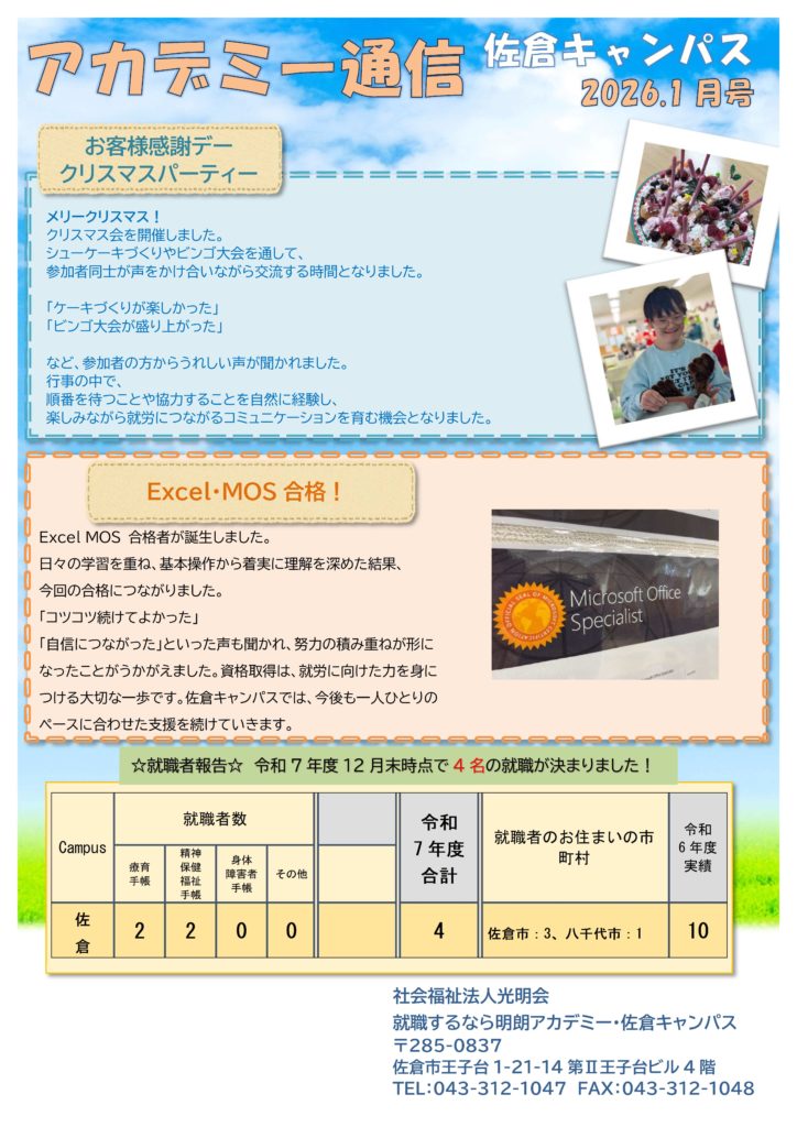 佐倉キャンパス通信(令和8年1月号)を掲載します!